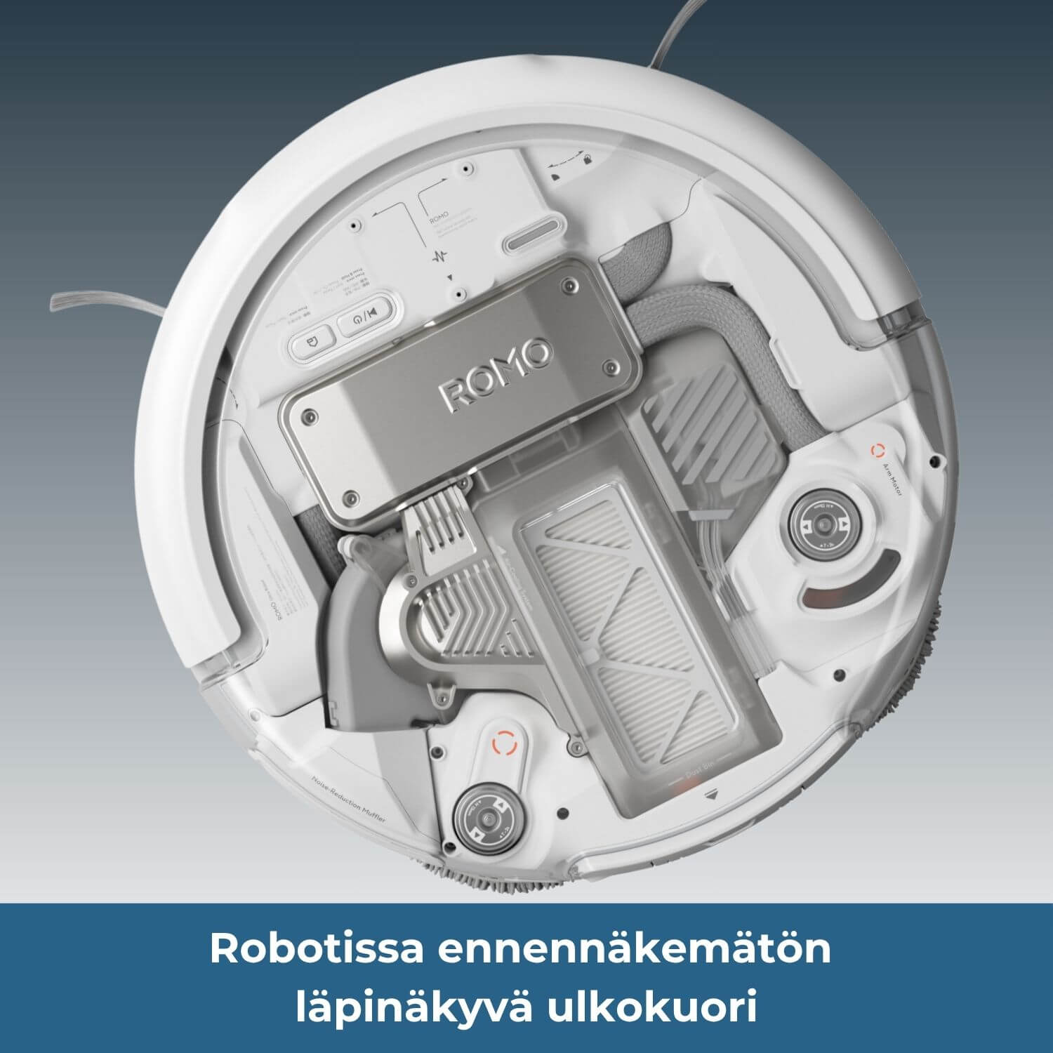 ROMO A kartoittaa tilan tarkasti ja tallentaa myös useamman kerroksen pohjakartat. Iso akku mahdollistaa jopa 3 tunnin siivouksen yhdellä latauksella, joten robotti sopii myös isoihin asuntoihin