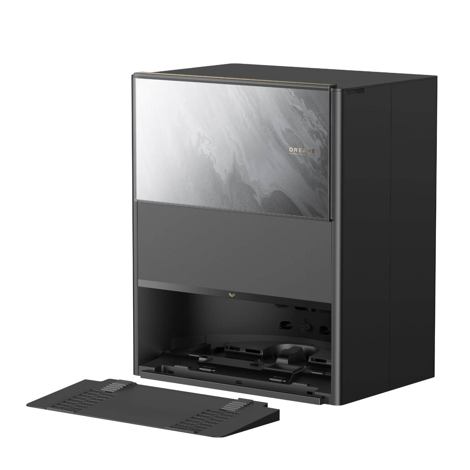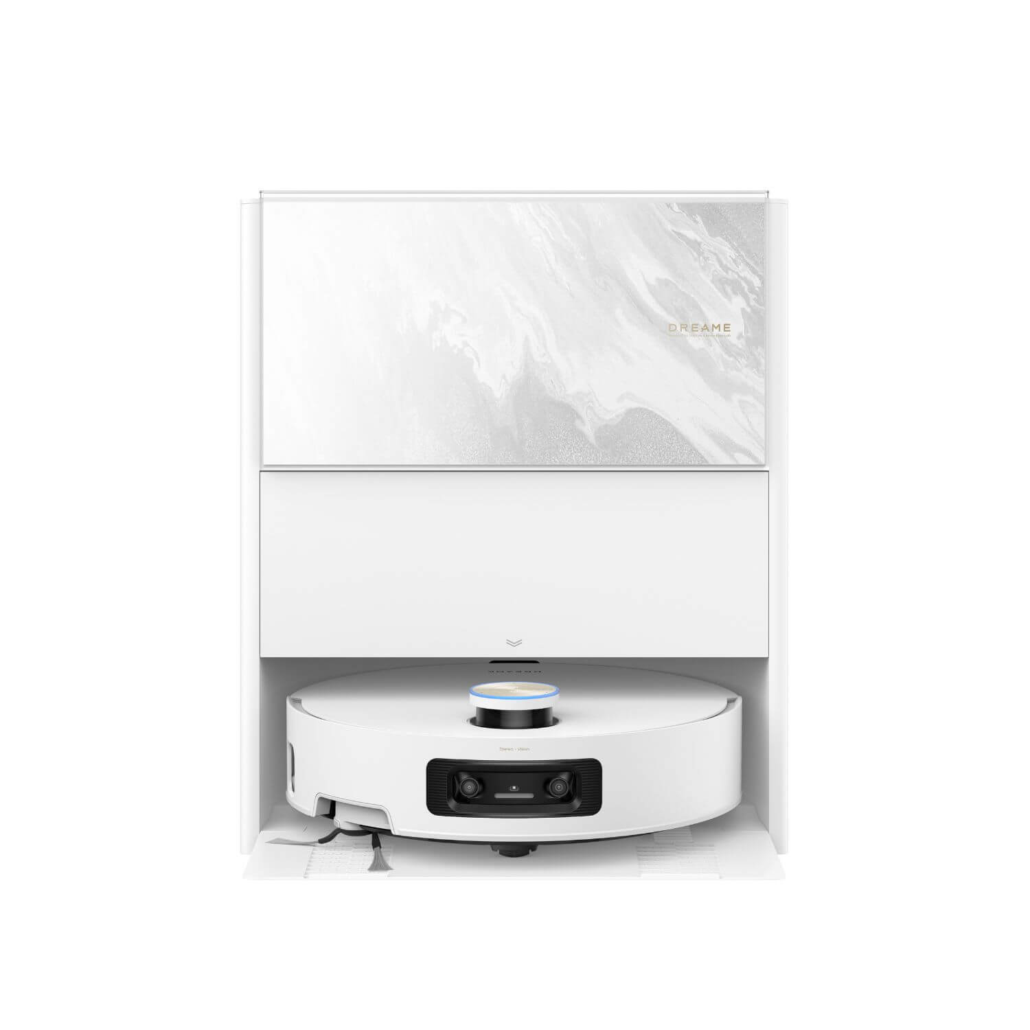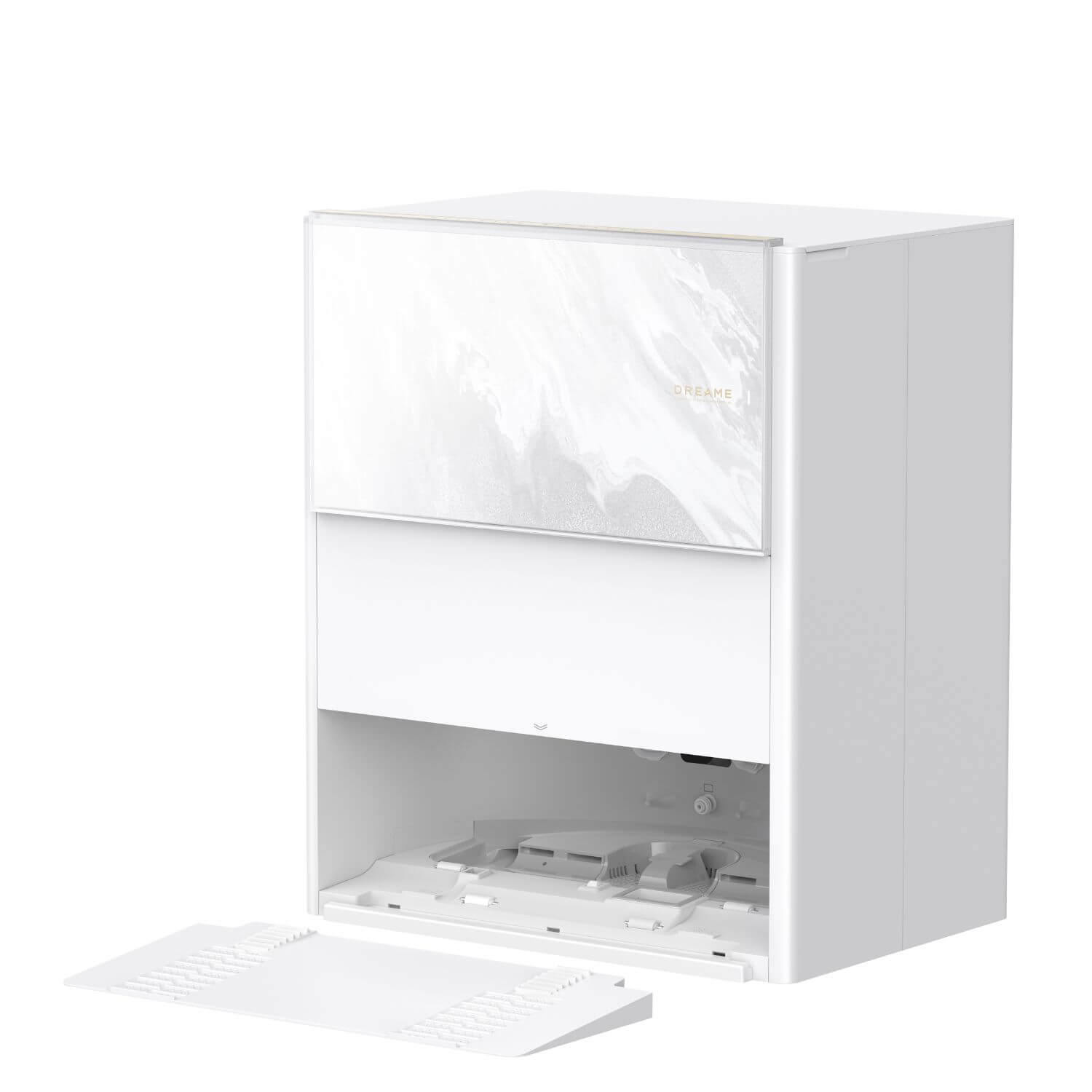 Imuroinnin loputtua Dreame Aqua 10 Ultra Track Complete tyhjentää robotin oman pölysäiliön puhdistustelakan pölypussiin sekä uutena ominaisuutena kuivaa pölypussin 50 °C ilmapuhalluksella. Pölypussin kuivaus ehkäisee bakteerien kasvua.