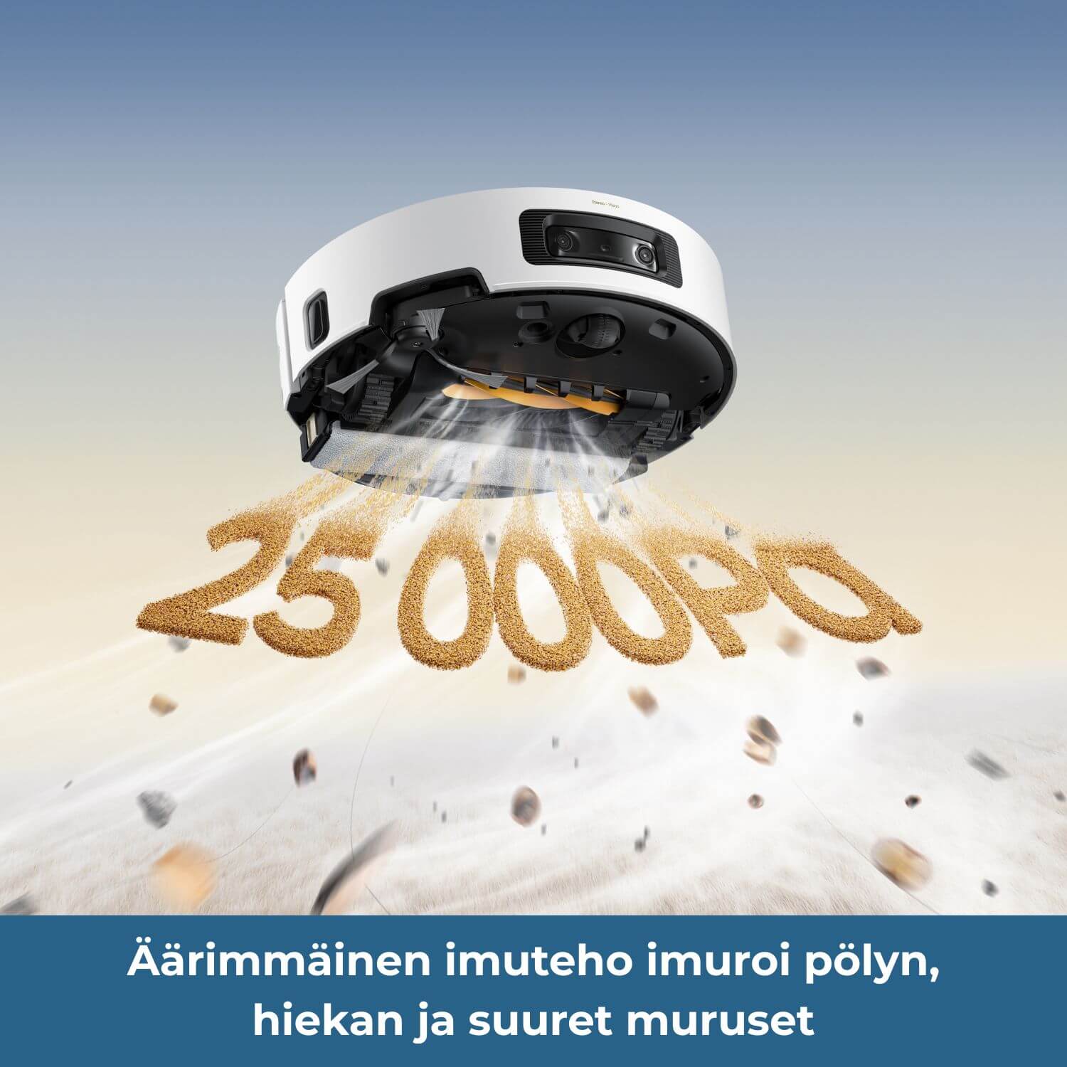 Aqua 10 Ultra Track -robotin imuteho on markkinoiden parhaimmistoa. Huimat 25 000 Pasacalia pitävät huolen, että lopputuloksena on perusteellisen puhtaat lattiat sekä matot, aina rakoja ja saumoja myöten.