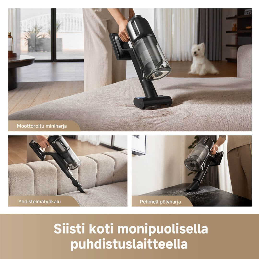 Moottoroitu miniharja on tarkoitettu esimerkiksi sohvien ja patjojen syväpuhdistamiseen karvoista, pölystä ja muista pienistä hiukkasista.
