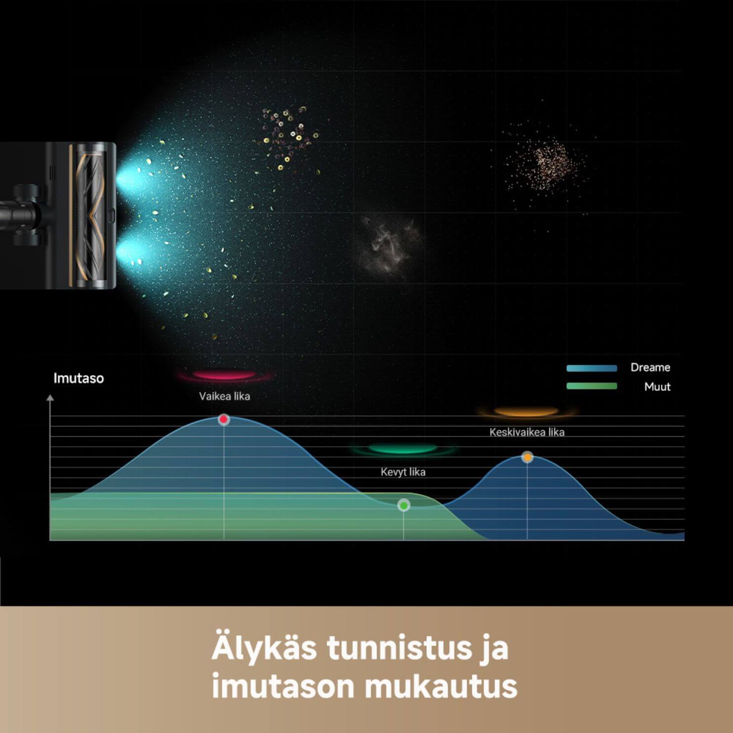Dreamessa on automaattinen pölyntunnistin, jonka perusteella varsi-imuri osaa säätää imutehoa automaattisesti. Tämän johdosta laite käyttää tarvittavan verran imutehoa, jolloin akun kesto on pidempi ja laitteen ääni hiljaisempi.