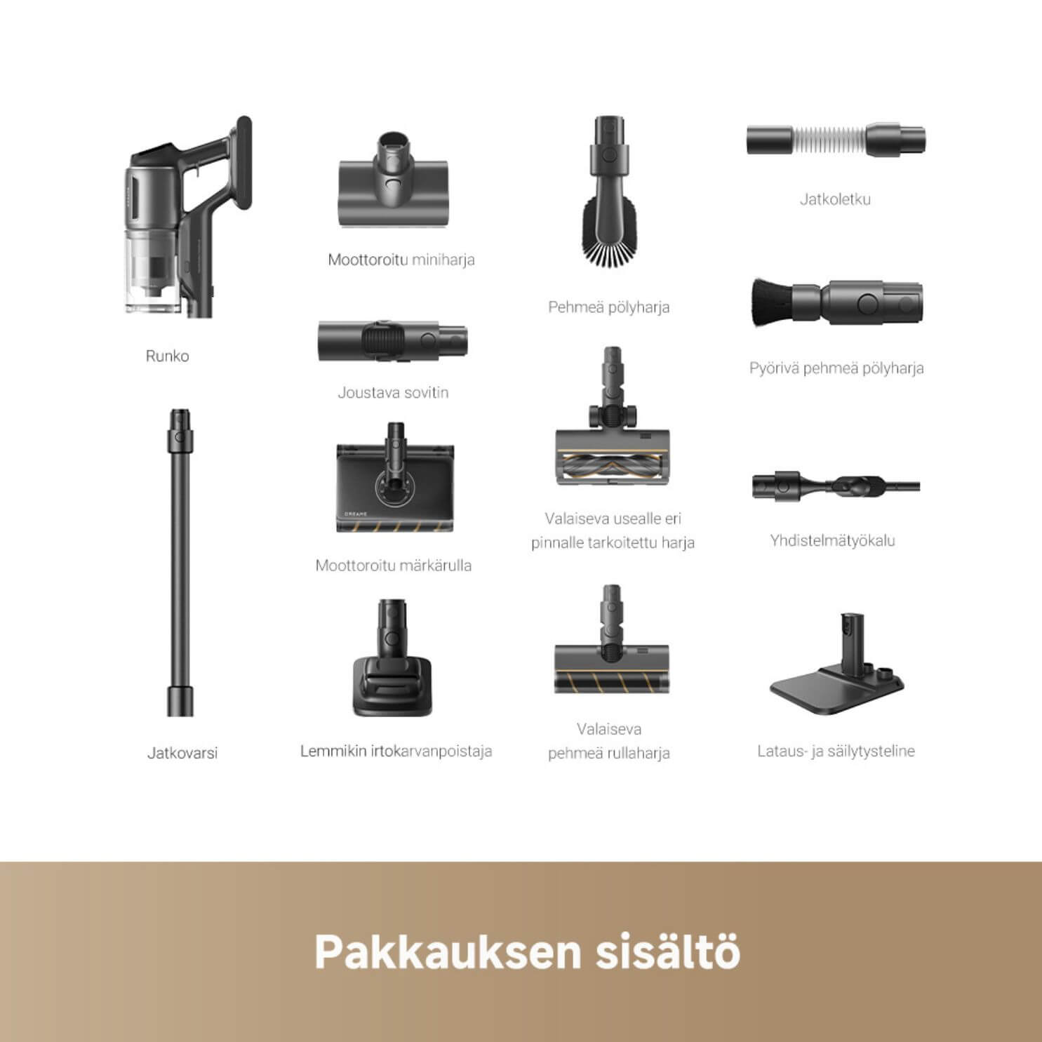 Dreamessa on riittoisa ja pitkäikäinen akku, jonka ansiosta varsi-imurin käyttöaika on noin 90 minuuttia. Pitkän käyttöajan johdosta imuroit suurenkin, jopa 300 m2, asunnon yhdellä latauksella.