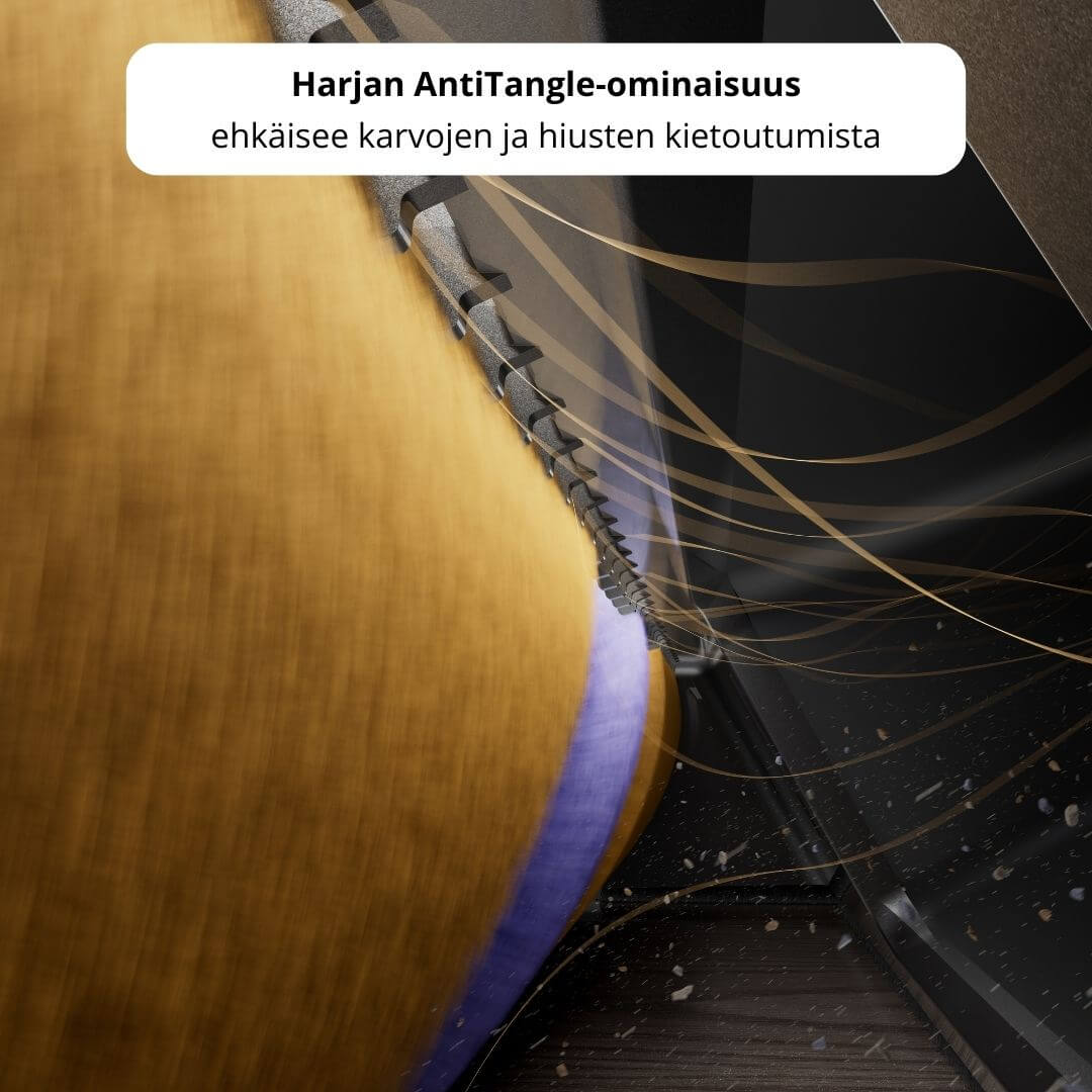 Kaikille pinnoille sopiva yleisharja Anti-Tangle ja Clean-to-Edge -ominaisuuksilla - estää karvojen kietoutumisen harjan ympärille ja siivoaa reunoja myöten