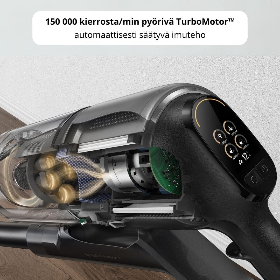 Z30 Ultra -varsi-imurissa on 150 000 kierrosta minuutissa pyörivä TurboMotor™, joka mahdollistaa huippuluokan imutehon. 330 AW imuteholla varsi-imuri kykenee imemään tehokkaasti pölyn, pienhiukkaset ja karvat huonekaluista, matoista, lattiapinnoilta ja niiden saumoista.