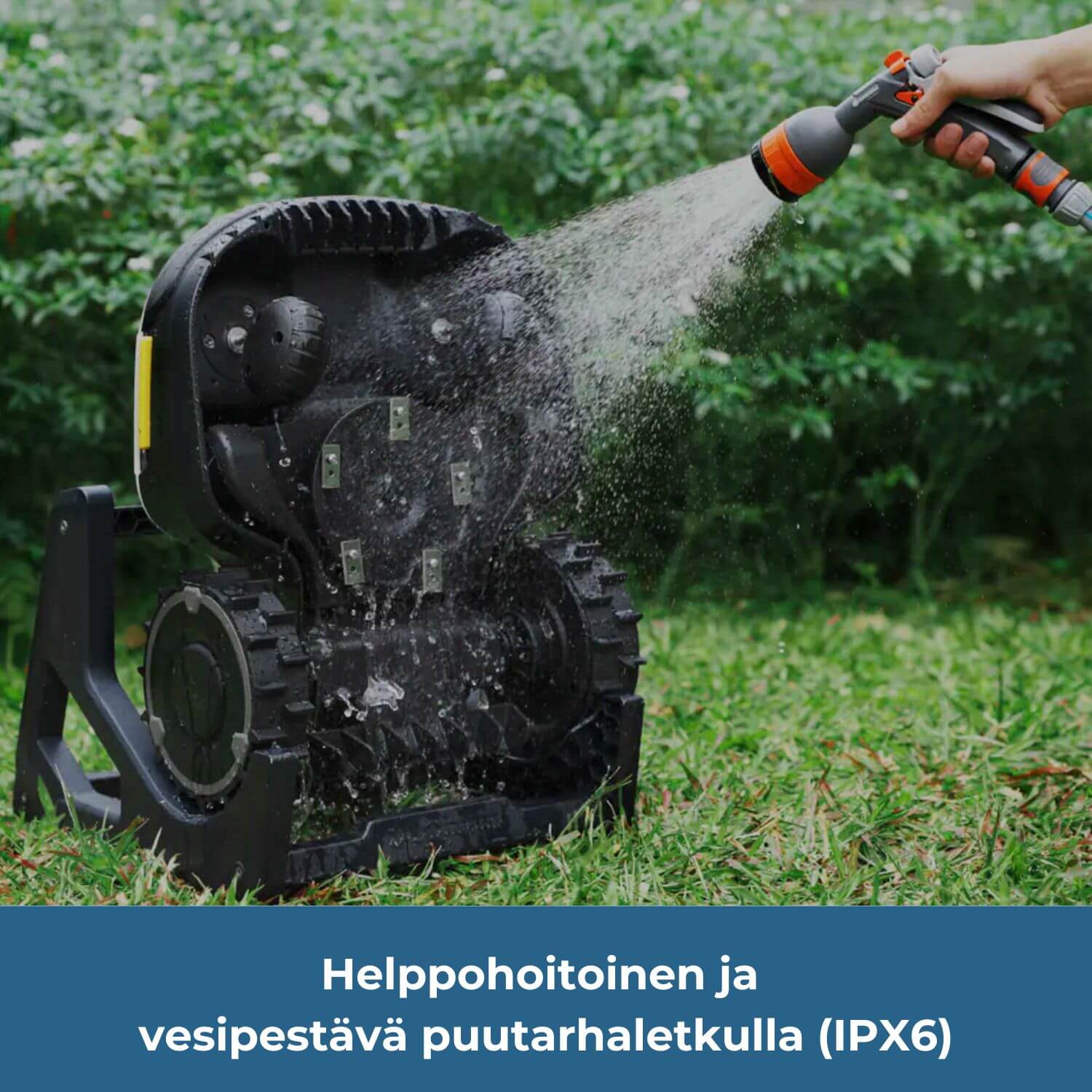 Vesipestävä - IPX6-luokitus mahdollistaa pesun puutarhaletkulla