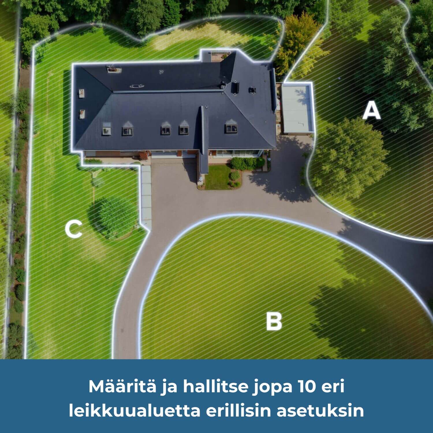 Pystyy hallitsemaan jopa 10 eri leikkuualuetta - jokaiselle alueelle voi määrittää omat asetukset ja aikataulut