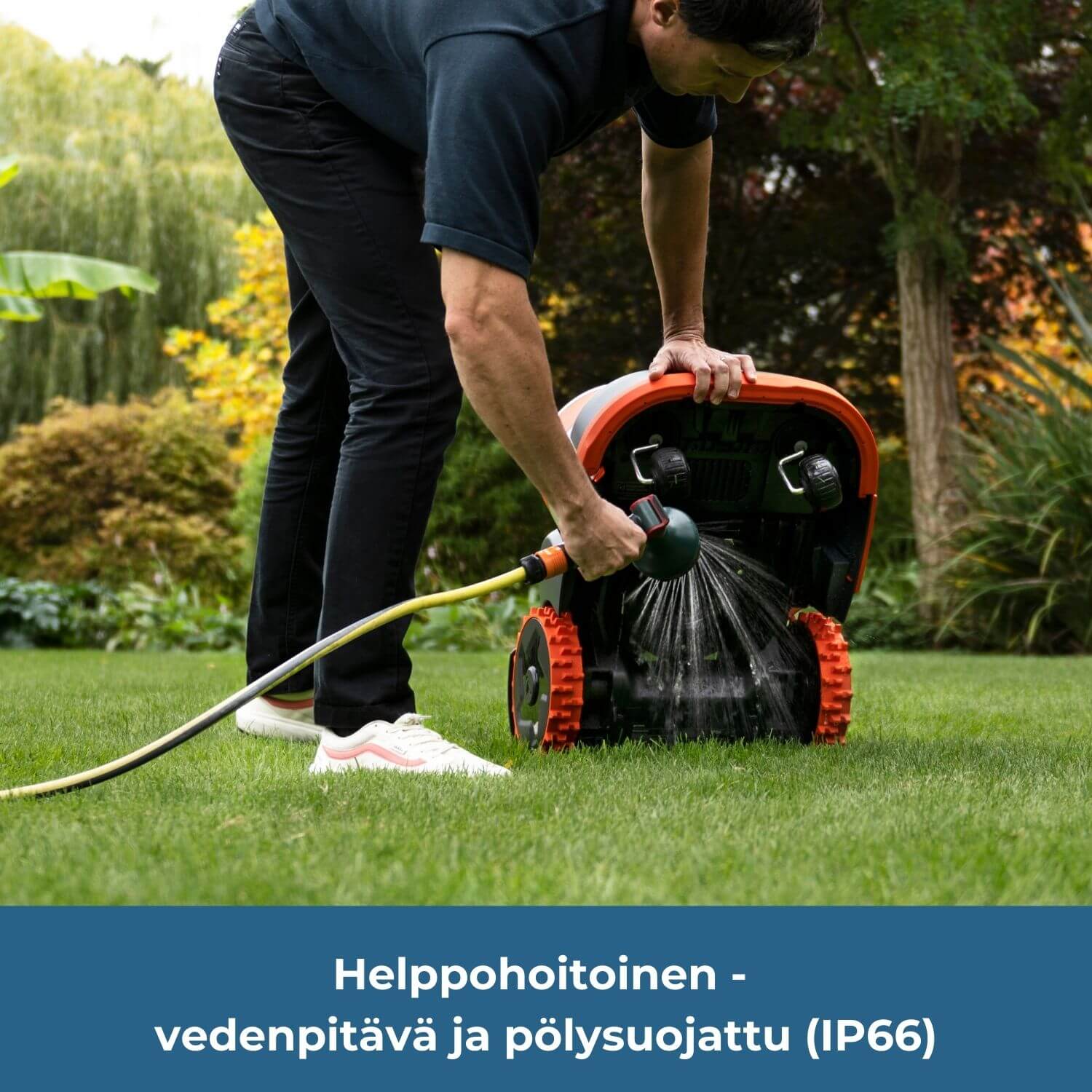 - Valitse i2-sarja, kun pihasi on simppeli ja pienempi kotipiha. Se on pieni ja ketterä robotti, joka on parhaimmillaan ahtaissa pihoissa.